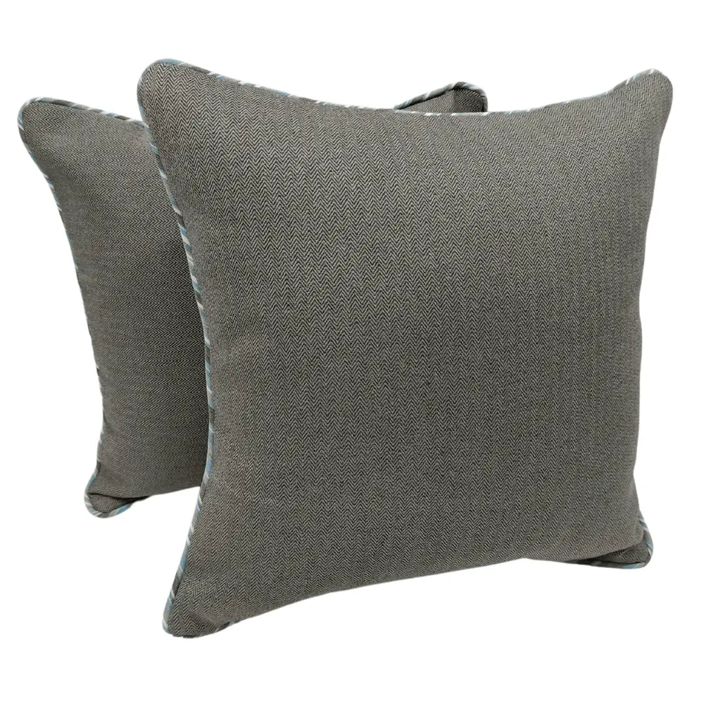 These sophisticated pillow covers feature a classic herringbone pattern in a deep charcoal hue, accented with a striped trim for a refined touch. Ideal for indoor spaces, they offer a timeless and elegant look. Size: 16x16 inches.