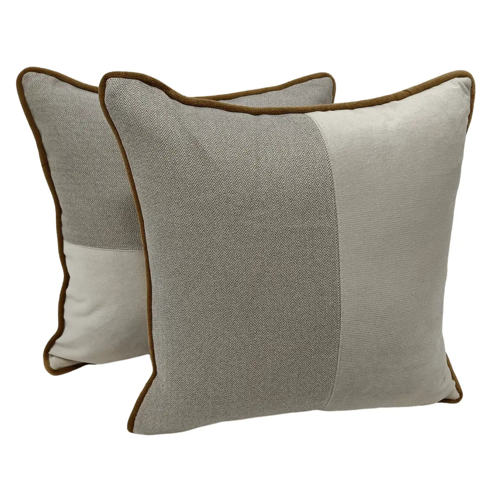 Featuring a sophisticated taupe and sand panel design with a refined brown trim, these pillow covers add a touch of elegance to any indoor space. Their neutral tones blend effortlessly with various décor styles, offering a soft yet stylish accent to your home.