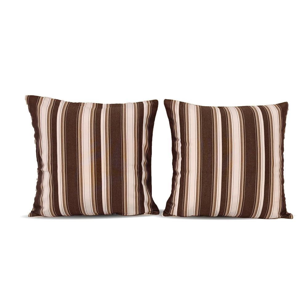 Add comfort and charm to your outdoor spaces with these Agora fabric pillow covers. The rich brown and cream stripes create a sophisticated vibe, while the durable fabric withstands the elements. The refined piping detail enhances the overall aesthetic. Designed for practicality and style, these covers are perfect for transforming your outdoor furniture into an inviting retreat.