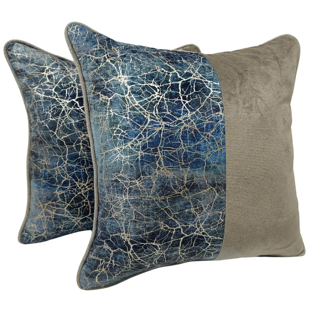 Elevate your indoor décor with these striking pillow covers, featuring a bold metallic design against a rich fabric backdrop. The unique crackled foil pattern adds an artistic flair, creating a statement piece for your sofa, lounge chair, or bed. Designed for both comfort and style, these covers bring a luxurious and modern touch to any space.