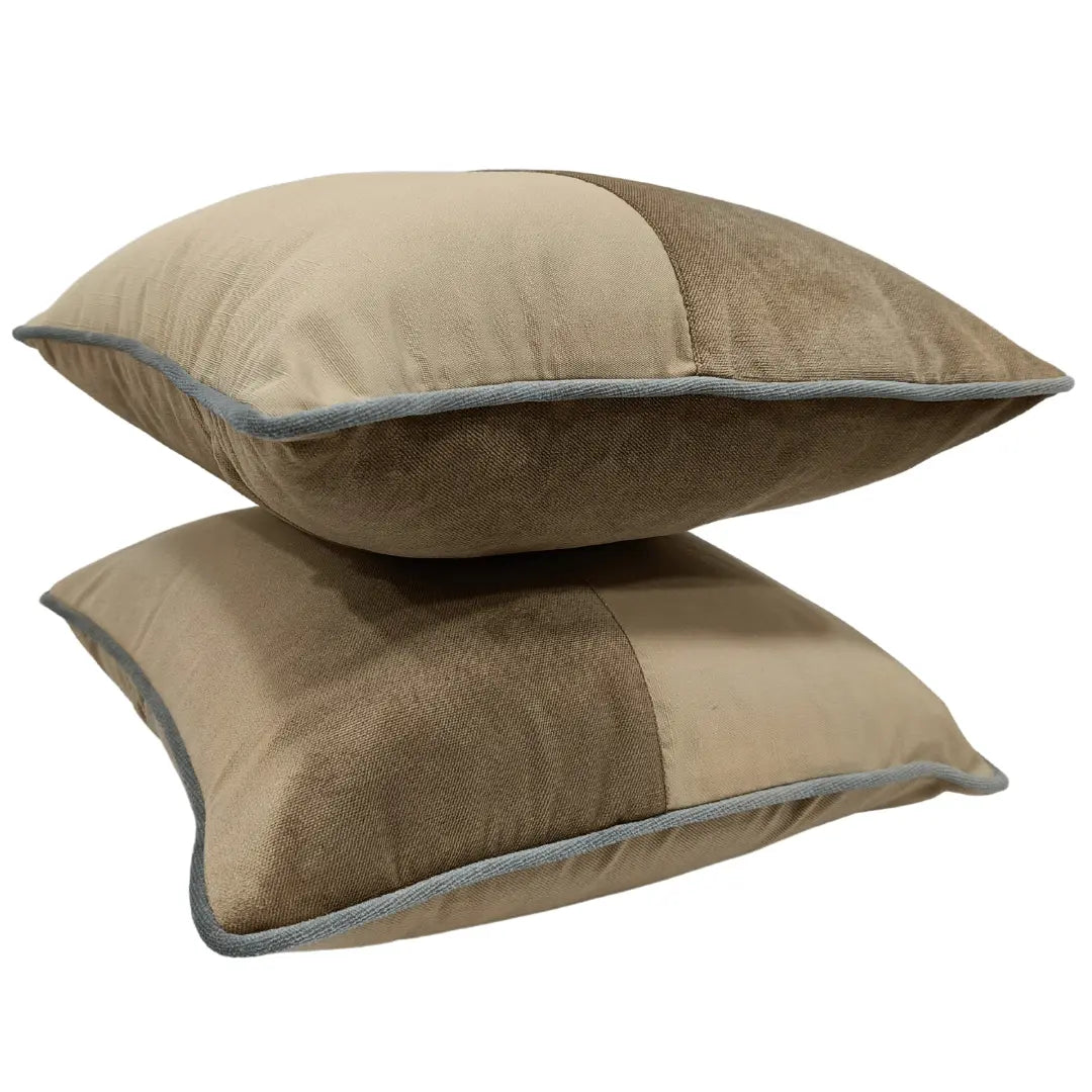 Beige and Taupe Dual Tone Pillow Covers (16x16, Set of 2)