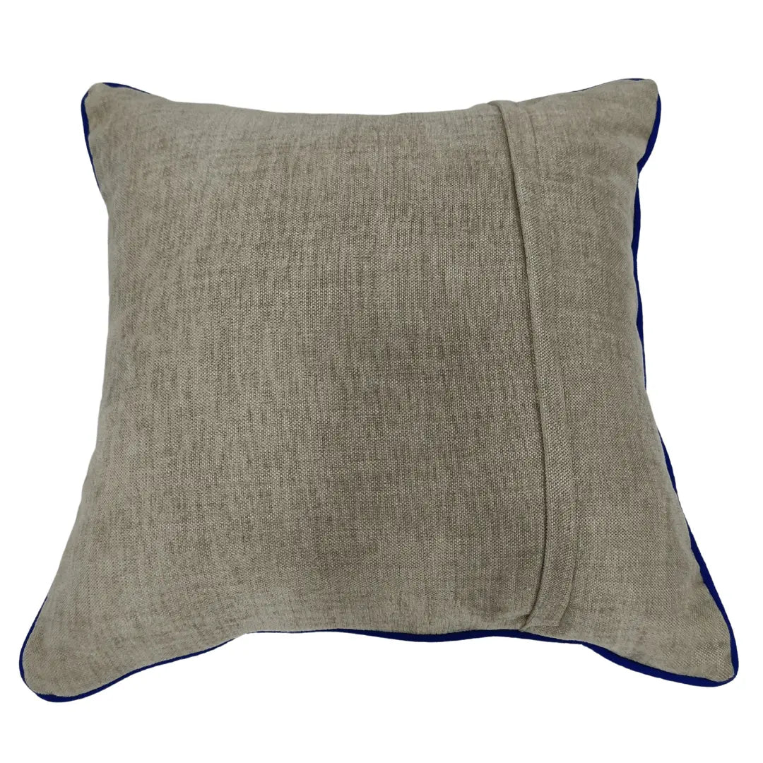 These sophisticated pillow covers blend beige and ivory tones with a textured contrast, accented by bold blue piping for a refined touch. Perfect for indoor spaces, they add an elegant and cozy feel to sofas, chairs, or beds. Size: 16x16 inches.
