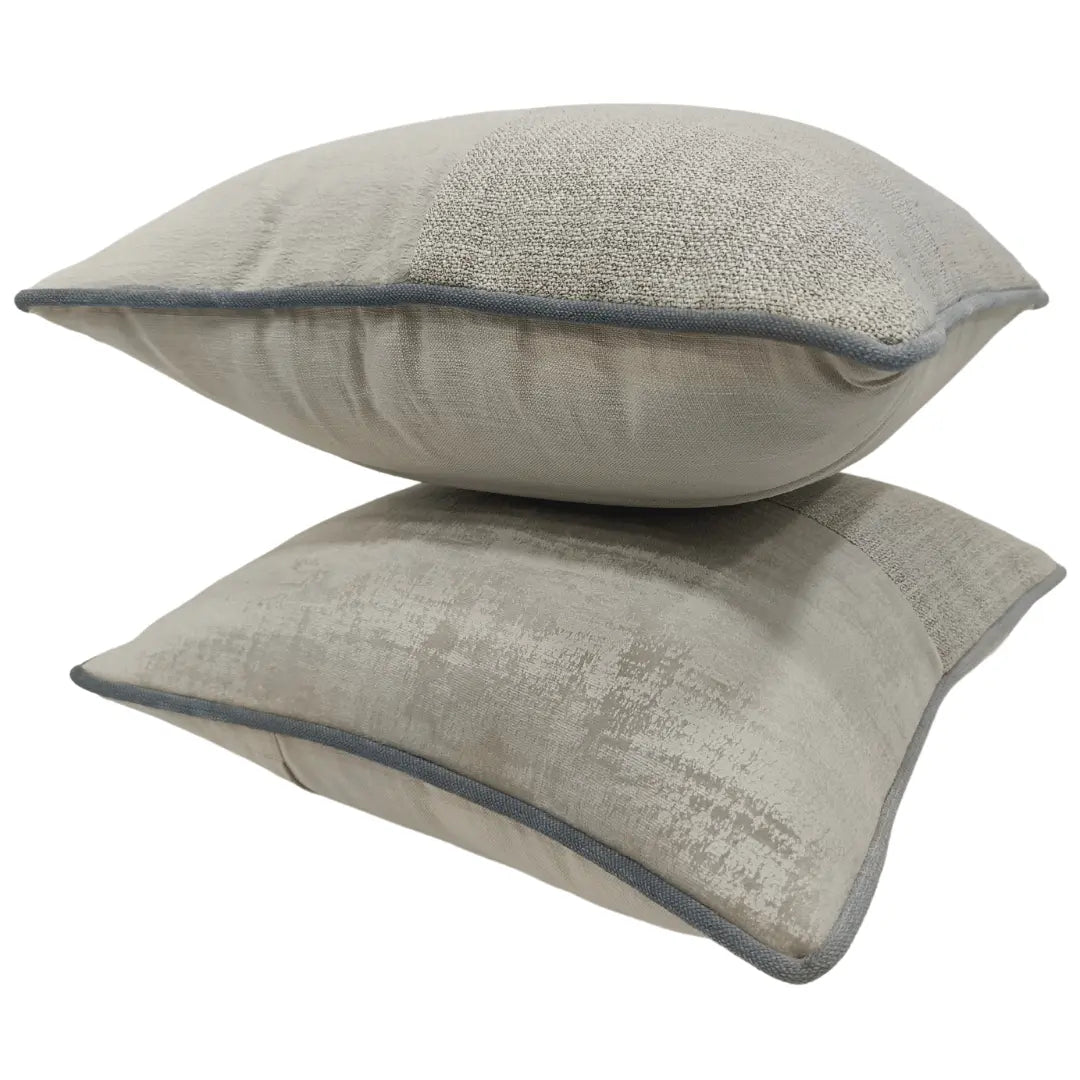 Soft and sophisticated, these beige and silver pillow covers blend textured and smooth fabrics for a refined look. Designed for indoor use, they add a neutral elegance to any modern or classic setting.