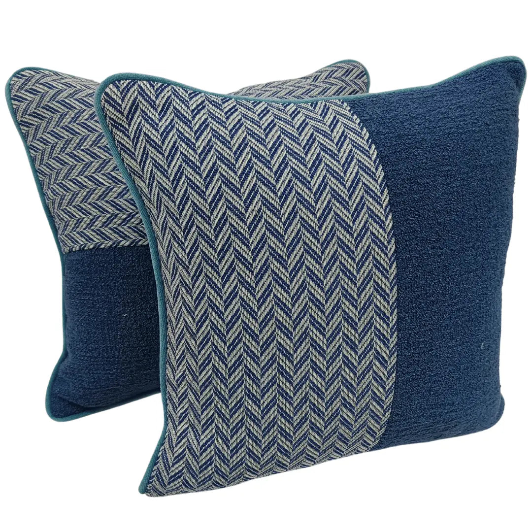 A stylish blend of pattern and texture, these pillow covers feature a striking herringbone design paired with a rich, deep blue accent. The contrast between the intricate weave and plush feel adds depth and sophistication, making them a perfect addition to any indoor space. Ideal for enhancing sofas, chairs, or beds with timeless elegance.