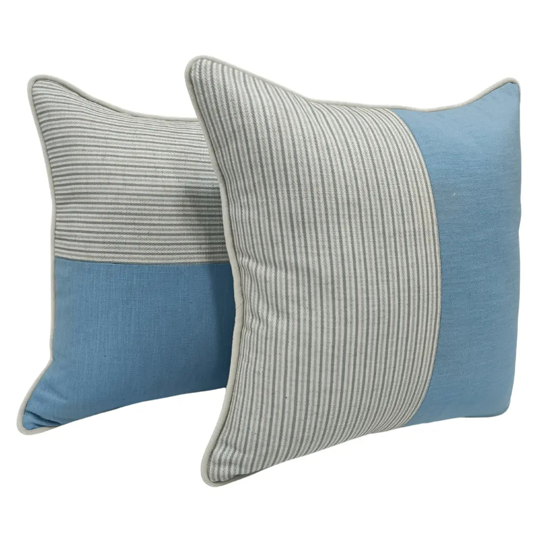 Refresh your indoor space with these 16x16 pillow covers featuring a soft blue and striped design on the front, while the back features a calming mint green. Accented with elegant white piping, they are a semaless addition to any setting.