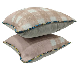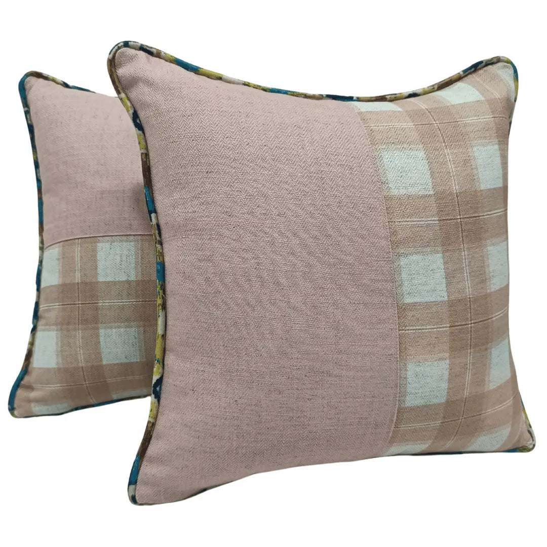 Add a soft and sophisticated touch to your space with these 16x16 pillow covers, featuring a blush plaid and herringbone fabric combination. The gentle pastel tones blend seamlessly, while the contrast piping adds a playful charm. Made for indoor use, these cushions offer both style and comfort, perfect for elevating your home decor.