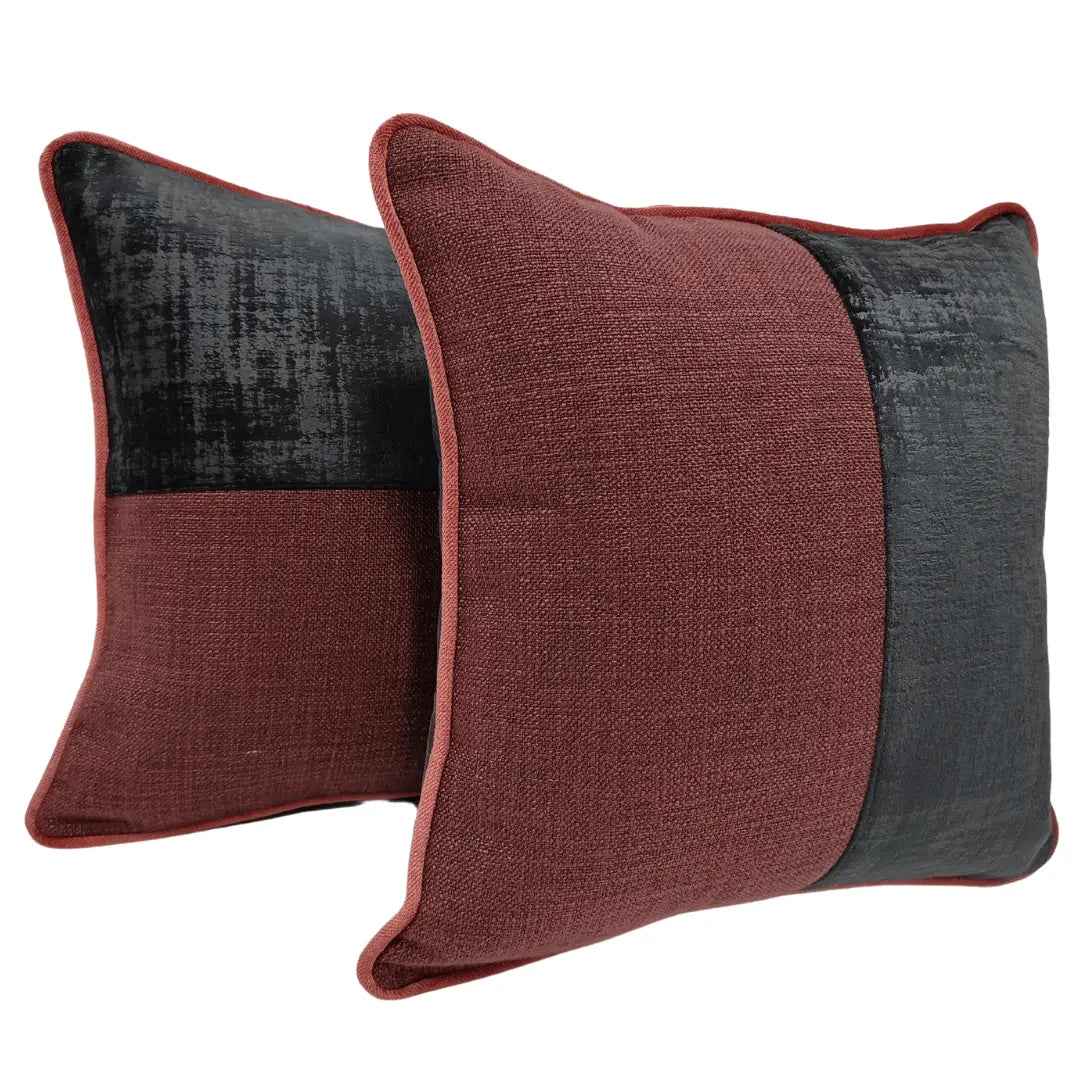 Add a bold touch to your decor with these pillow covers featuring a rich burgundy and deep charcoal combination. The textured and smooth fabric blend with terracotta piping offers a modern and elegant look. Perfect for sofas, beds, or cozy nooks.
