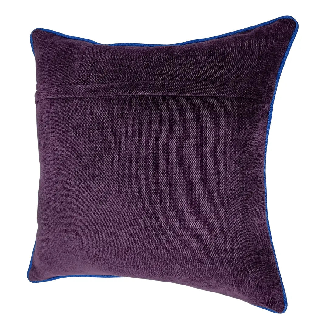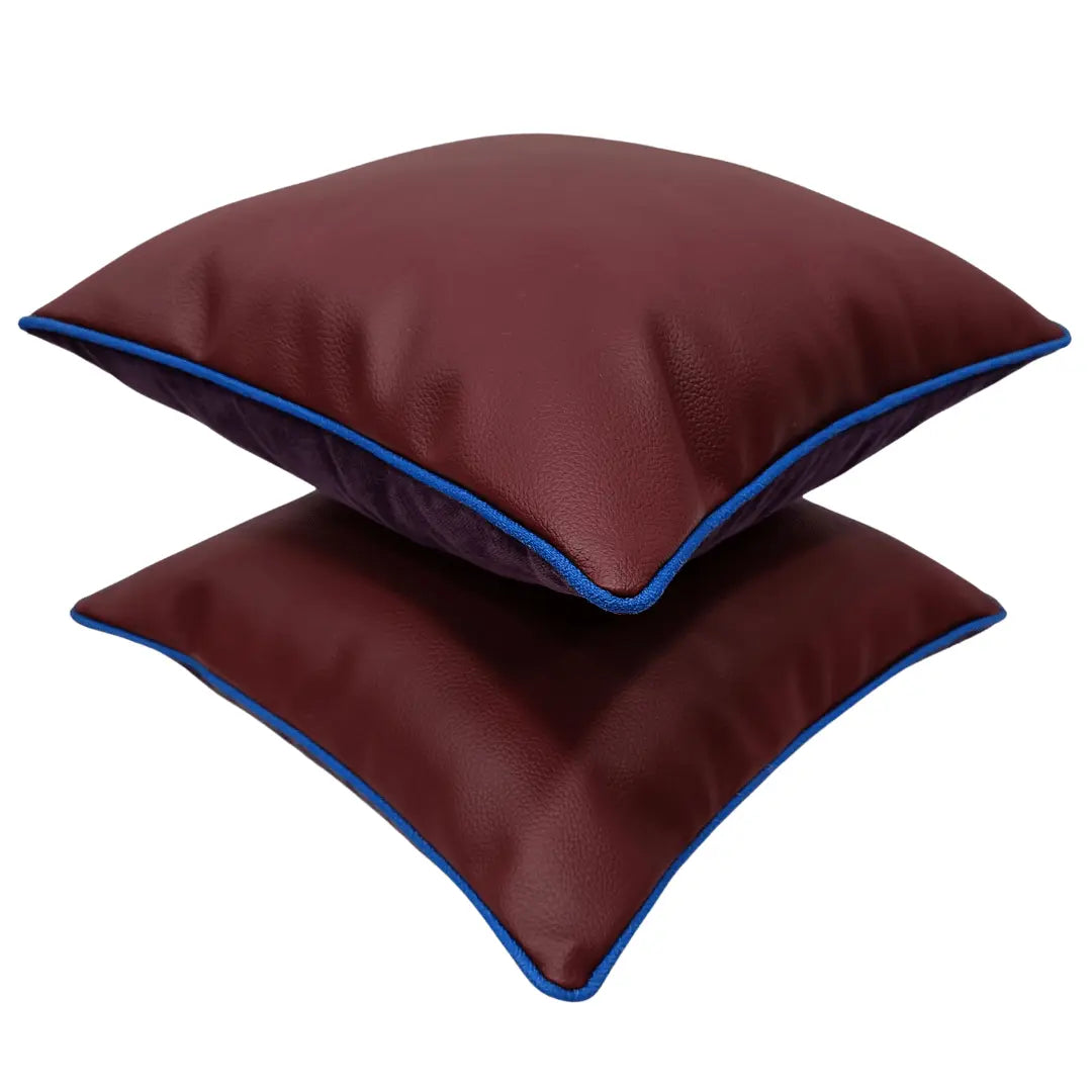 Elevate your space with these stylish dual textured pillow covers. The front features a rich burgundy leather like finish, while the back showcases a deep purple self textured fabric. Accentuated with contrasting blue piping, these covers add a bold touch to any décor. Perfect for indoor use, these covers come in 16x16 inches.