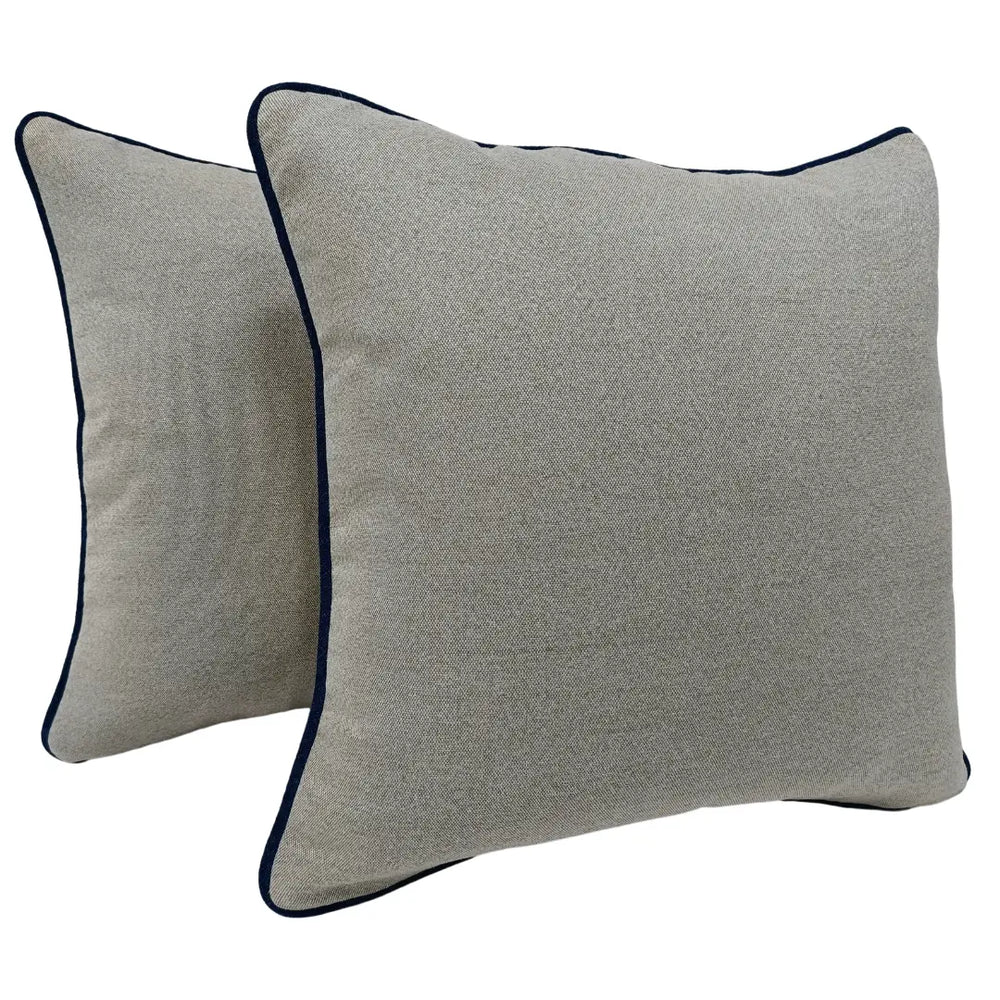 These indoor throw pillows feature a soft neutral cotton fabric with contrast piping for a timeless look. Ideal for adding comfort and elegance to sofas, chairs, or beds.