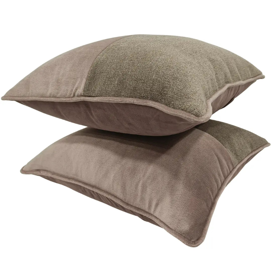 Elevate your indoor décor with these stylish dual-tone pillow covers, featuring a sophisticated blend of textures and colors. The complementary fabric panels create a striking contrast, adding depth and visual appeal to any space. Designed for both comfort and durability, these covers are perfect for enhancing modern and classic interiors alike. The neatly piped edges add a refined touch, making them ideal for sofas, beds, or accent chairs.