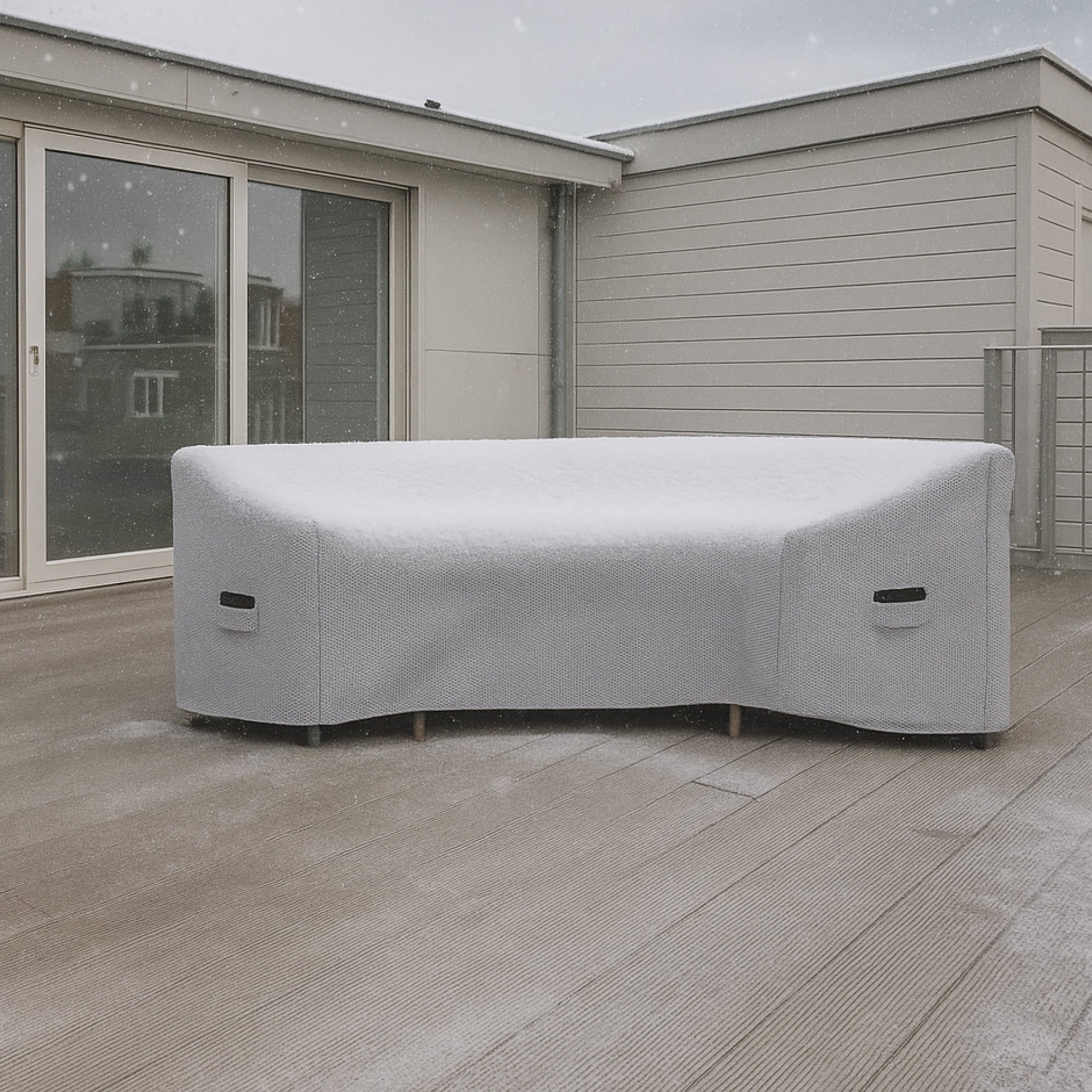 Yes. The 18 oz PVC-coated polyester is waterproof, UV-resistant, and snow-ready. Its heavyweight and construction protect furniture year-round, in any climate.