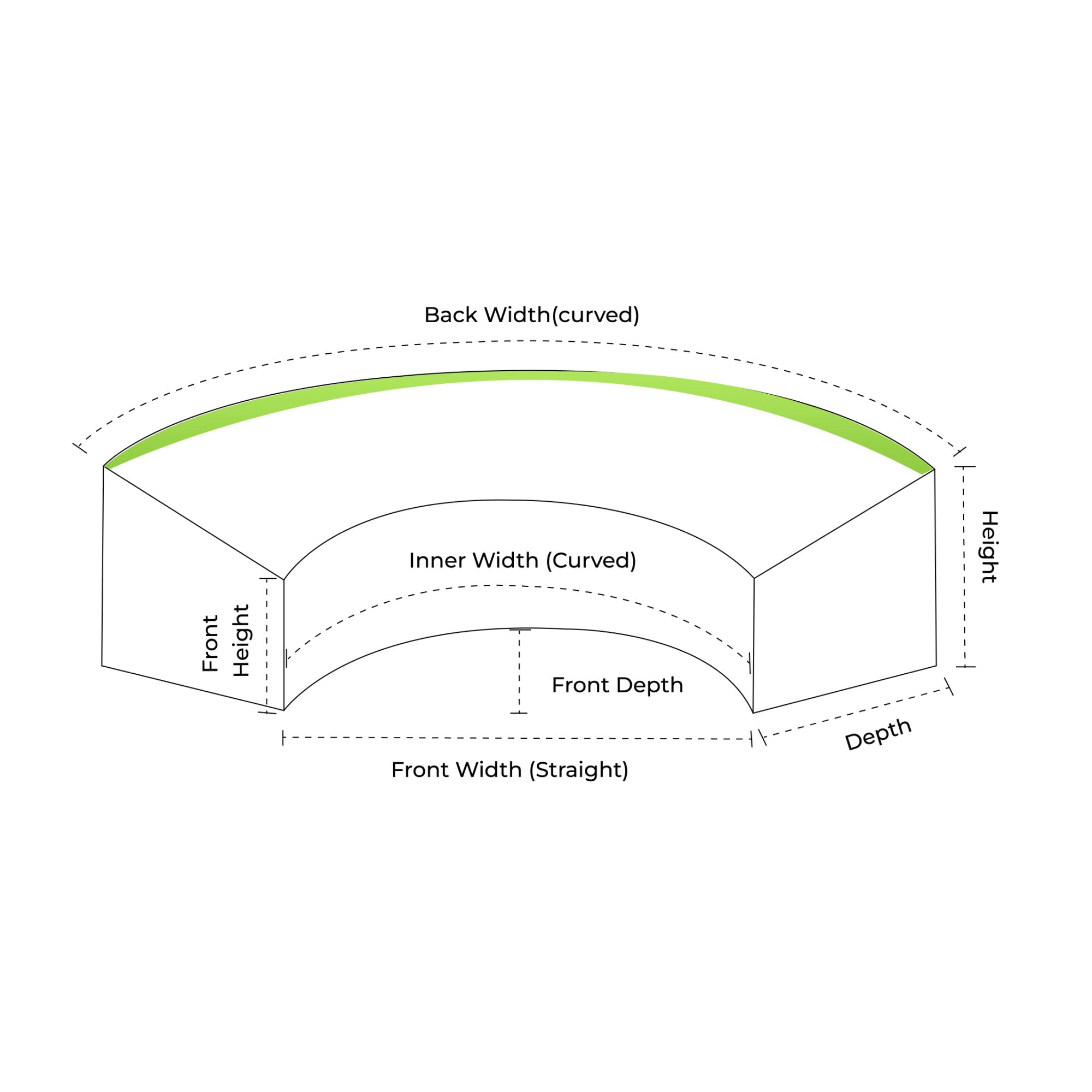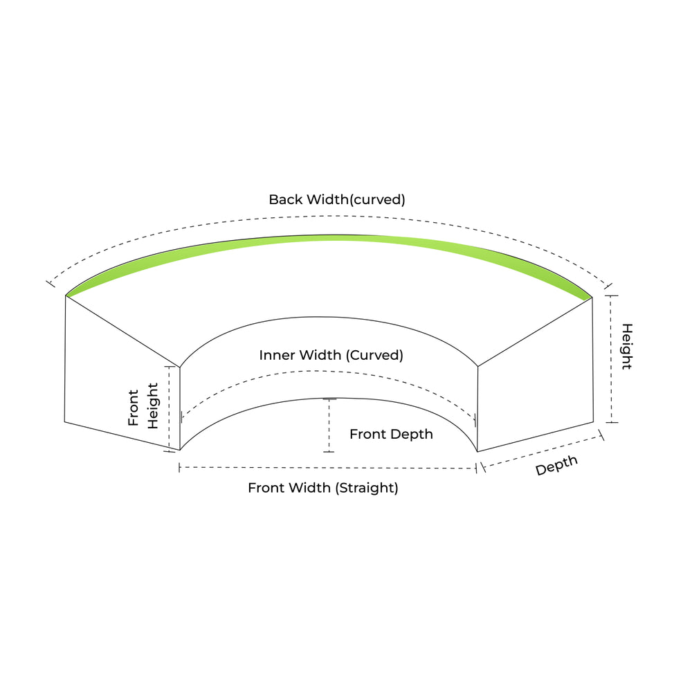 These measurements allow oFront Width (Straight):ur team to replicate your furniture’s curvature with precision—ensuring your cover hugs every curve and edge for perfect weatherproof protection.
