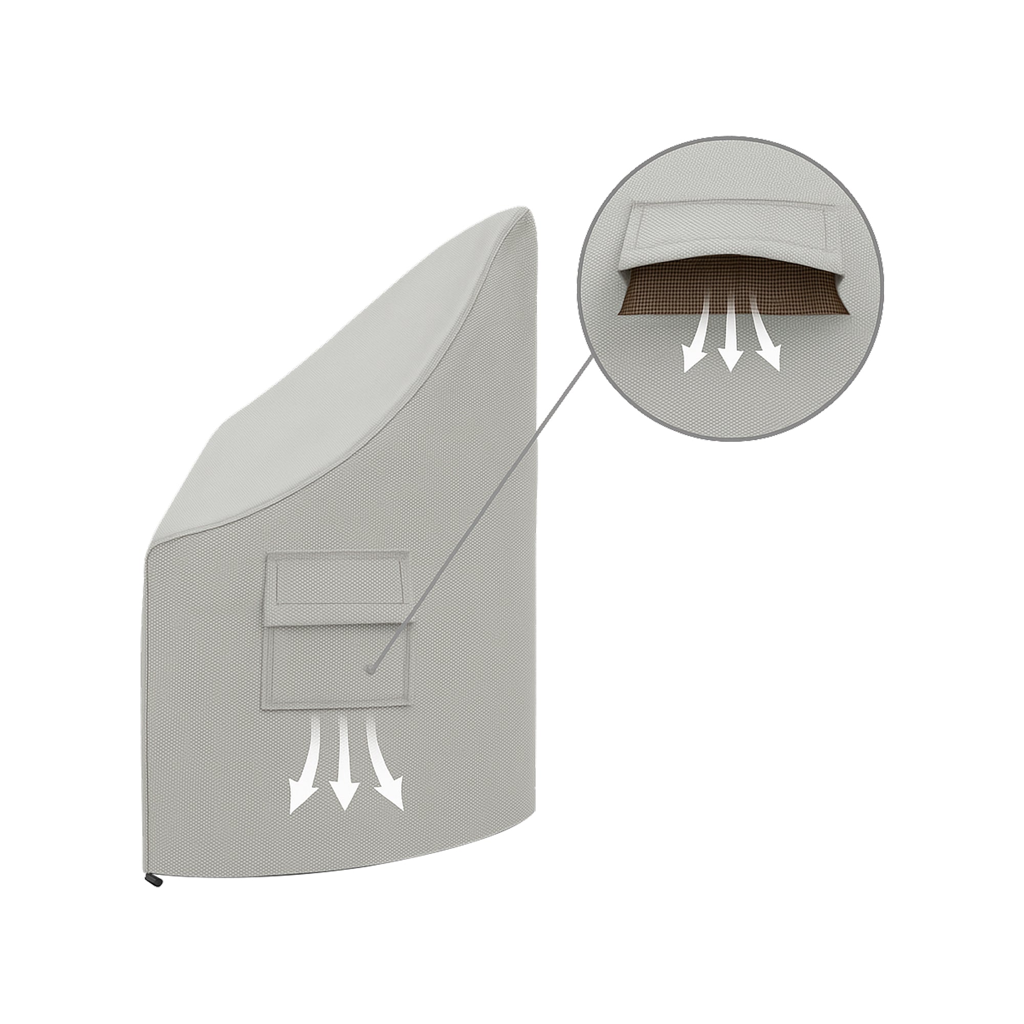 Reinforced seams strengthen the cover for daily use and seasonal changes. Integratedventilation pockets promote airflow beneath the fabric, minimizing trapped humidity and preventing mold formation. For customers in windy or open areas,optional drawstrings can be added for a more secure, tight fit.Side handles make covering or removing the daybed smooth and effortless.