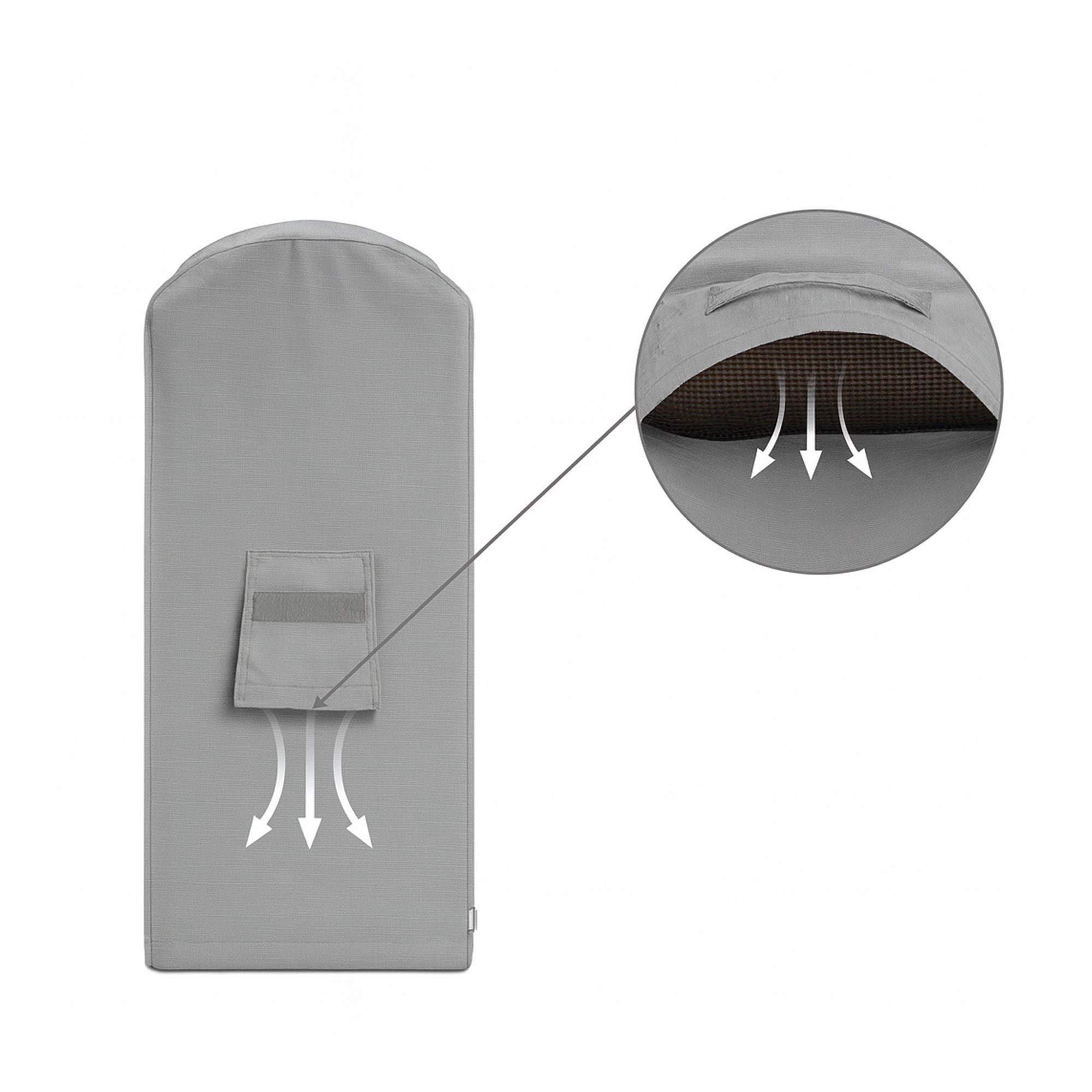 The Custom Firewood Rack and Tool Storage Cover provides comprehensive weather protection for integrated firewood and fire accessory storage systems with architectural design elements. Our custom-designed cover envelopes your entire unit from ground level to top, protecting both your seasoned firewood and fire management tools while accommodating decorative arched tops, finials, and frame details. The full-length design covers the bottom tool storage compartment where pokers, tongs, log carriers, and kindling are kept, extends through the main wood storage section, wraps around decorative frame elements, and protects the entire structure to the highest point. This cover shields everything from rain, snow, humidity, and UV damage while maintaining proper ventilation that prevents condensation on both wood and metal surfaces.