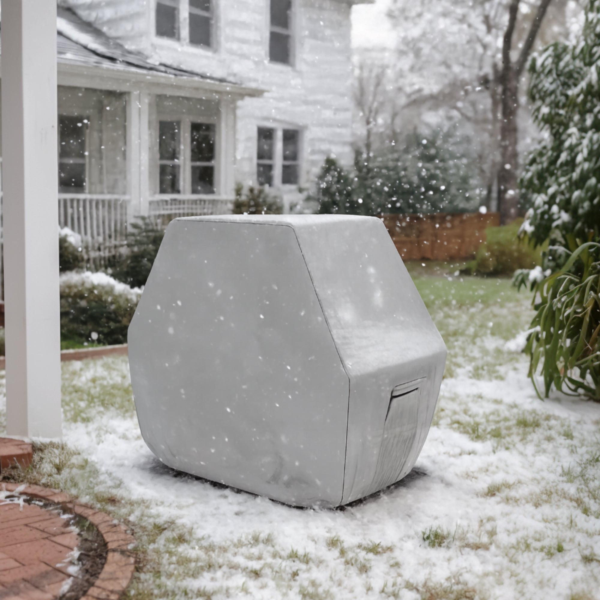 The contoured hex design naturally sheds snow off the sides instead of letting it pool. The reinforced seams at each angle add strength, so the cover won’t stretch or lose shape.