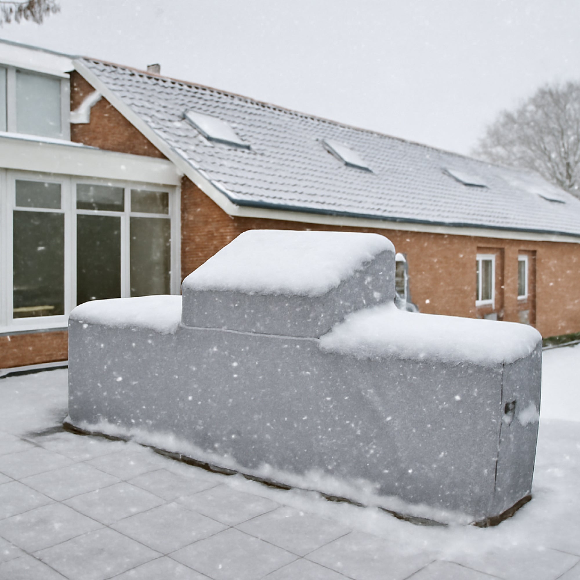 The Custom Kitchen Island Cover is specifically engineered for complete outdoor kitchen systems featuring built-in grills, countertop work surfaces, storage cabinets, and integrated appliances. Whether you own a custom-built masonry island, a modular outdoor kitchen system, or an L-shaped cooking station, this cover envelops your entire outdoor kitchen—from the grill hood and burners to countertops, cabinet storage, refrigeration units, and all work surfaces—in perfectly fitted, all-weather protection.
