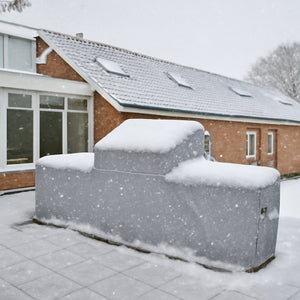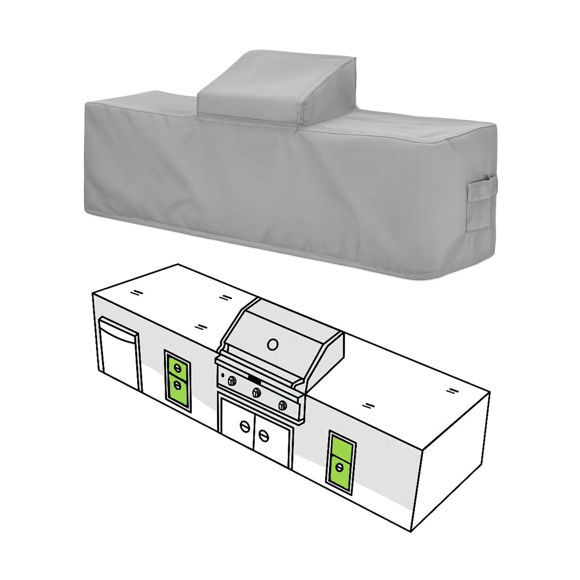 This cover addresses every aspect of outdoor kitchen protection through nine precision measurements that capture your complete island configuration, including the grill's position within the counter, the asymmetrical layout of work zones, and the varying heights from counter to grill hood. The custom fit eliminates common problems like inadequate grill hood coverage that exposes expensive cooking equipment, insufficient counter protection that allows water pooling and staining, or excess fabric that interferes with cabinet access or creates wind-sail effects.