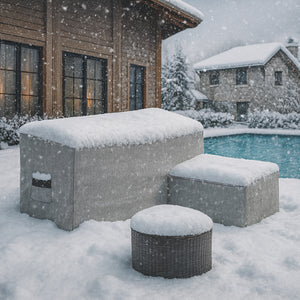 The cover is made from18 oz PVC-coated polyester, a professional-grade outdoor material designed for long-lasting durability. The fabric’s waterproof PVC layer keeps moisture out, while the UV-stabilized surface prevents fading, stiffness, and cracking under sun or cold exposure.