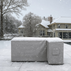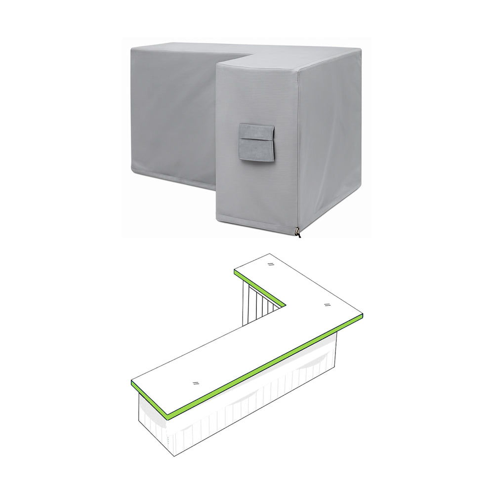 Each Custom L Shape Outdoor Bar Island Cover is constructed from 18 oz PVC-coated polyester, a heavy-duty fabric designed for superior outdoor performance. This fabric offers excellent tear resistance and weatherproofing, ideal for protecting L-shaped bar islands against harsh elements.