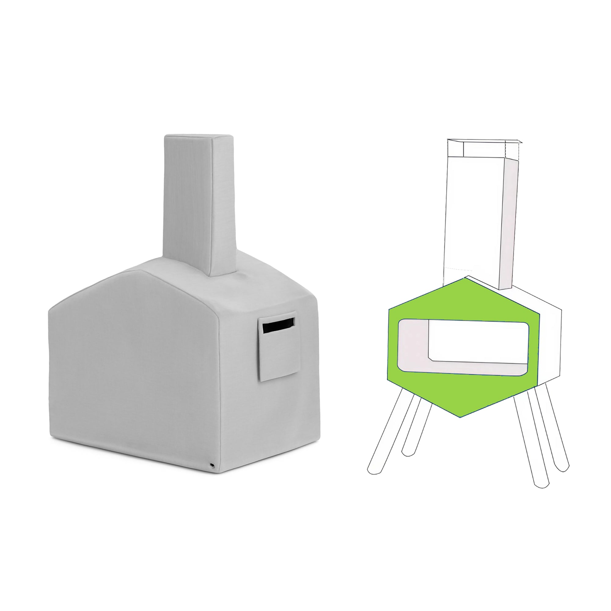 Each Custom Modern Geometric Chiminea Cover is crafted from 18 oz PVC-coated polyester, an industrial-grade outdoor fabric engineered to withstand extreme weather conditions while accommodating complex geometric architectures and integrated chimney systems. The heavy-duty PVC coating creates a waterproof barrier that repels rain, snow, sleet, and moisture across both the angular geometric body and vertical chimney pipe.
