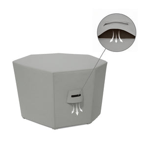 Ventilated, Weatherproof Engineering: Strategic air vents maintain airflow beneath the cover, reducing humidity buildup without compromising waterproofing. The flat octagonal top and eight angled sides promote natural water runoff from multiple directions, preventing pooling, while the geometric design provides superior wind deflection.