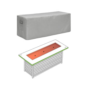 The Custom Rectangular Fire Pit Cover - Style 3 is designed to safeguard every component of your fire pit, including the burner system, control panel, and slatted base. By precisely measuring your fire pit’s height, width, and depth, we ensure that every corner is covered, protecting it from rain, snow, dust, and UV damage.