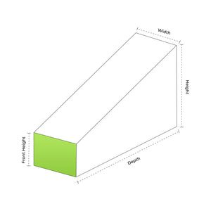 Ordering your custom slanted back cover requires four key measurements to capture your furniture's angled profile. Measure the height (ground to highest back point), depth (front to back at base), width (side to side), and front height (ground to top of front edge). These dimensions allow us to create a cover that follows your furniture's slanted angle perfectly, providing complete coverage from the tall back down to the lower front.