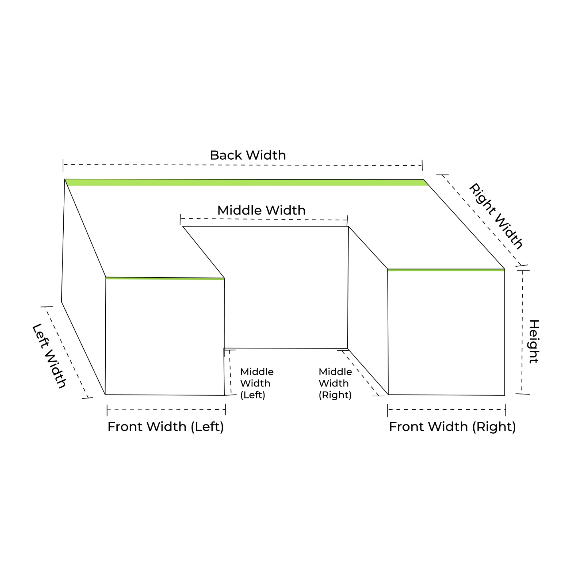 These measurements allow us to replicate your furniture’s U-shaped geometry precisely—ensuring a snug, symmetrical wrap around every corner and edge.
