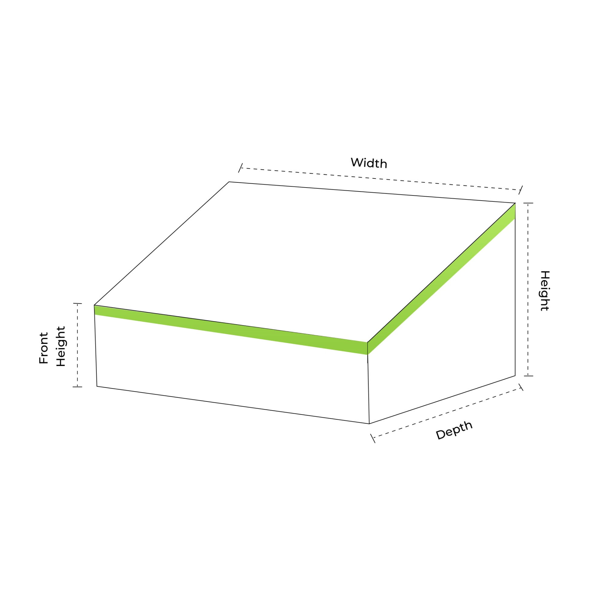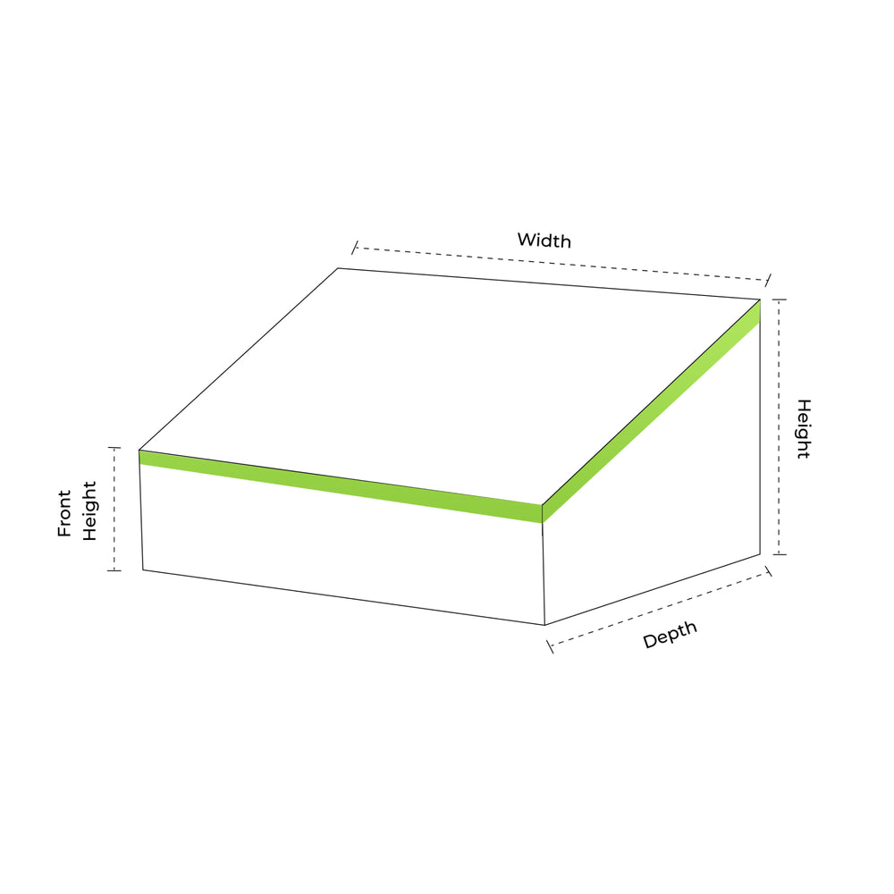 Ordering your custom wedge-shaped cover is simple. You’ll need four key dimensions:Height, Width, Depth, and Front Height.