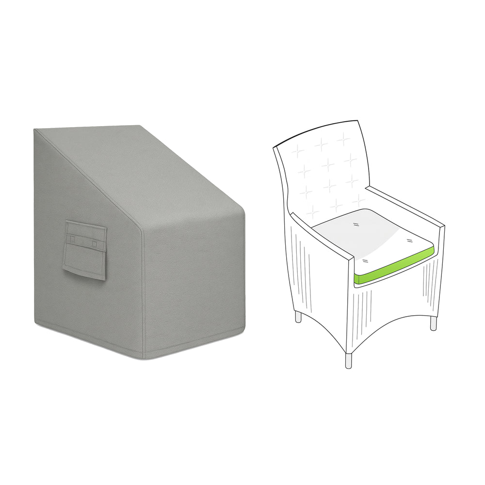 Our wicker patio chair covers are made with 18 oz PVC-coated polyester, a fabric built for heavy-duty outdoor protection. This material is water-resistant, so rain won’t seep through, and UV-resistant to block fading and cracking caused by the sun. The woven frame of wicker chairs can trap moisture, so built-in air vents allow airflow to prevent mold and mildew buildup. Reinforced seams provide strength at pressure points, while the drawstring hem keeps the cover in place through windy days. Easy-lift handles are included to make removal and replacement simple.