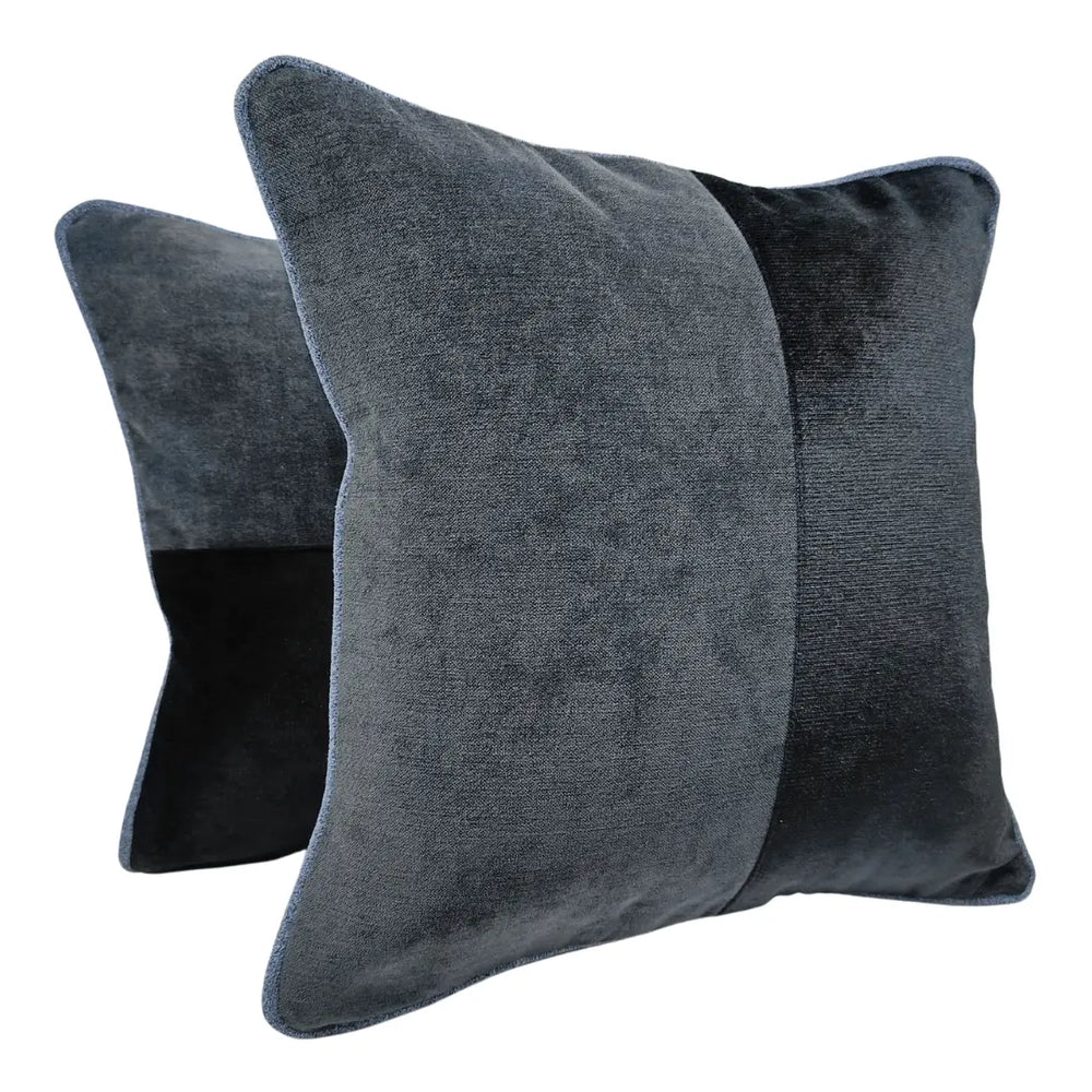 Elevate your décor with these rich charcoal-toned pillow covers, featuring a sophisticated patchwork design. A mix of matte and subtly lustrous textures creates depth, while the deep, moody hues bring an air of elegance to any space. Perfect for adding a refined, modern touch to your indoor setting.