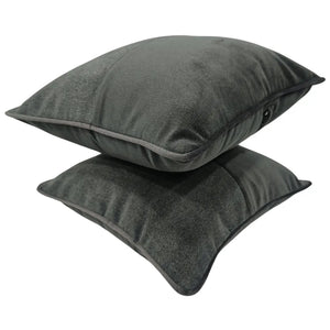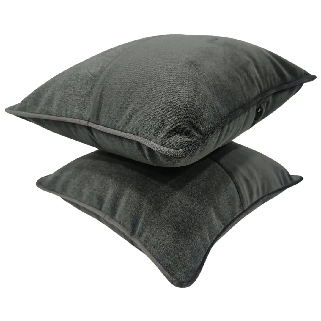 Bring a touch of sophistication to your indoor space with these deep charcoal pillow covers. The smooth, velvety texture contrasts beautifully with the subtle woven detail, creating depth and elegance. Finished with refined piping, they offer a sleek and polished look, perfect for modern and classic interiors alike.