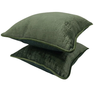 Add a touch of luxury and depth to your space with these forest green velvet pillow covers. The soft, rich texture and matching piping bring an elegant and cozy feel to any indoor setting.