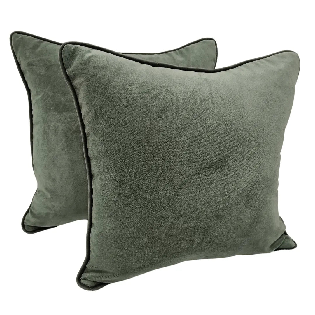 Enhance your space with these luxurious deep olive velvet pillow covers. Featuring a rich texture and elegant finish, they add warmth and sophistication to any decor. Designed for indoor use, these 16x16 pillow covers come with a sleek contrast piping for a refined touch. Perfect for elevating your sofa, bed, or lounge area.