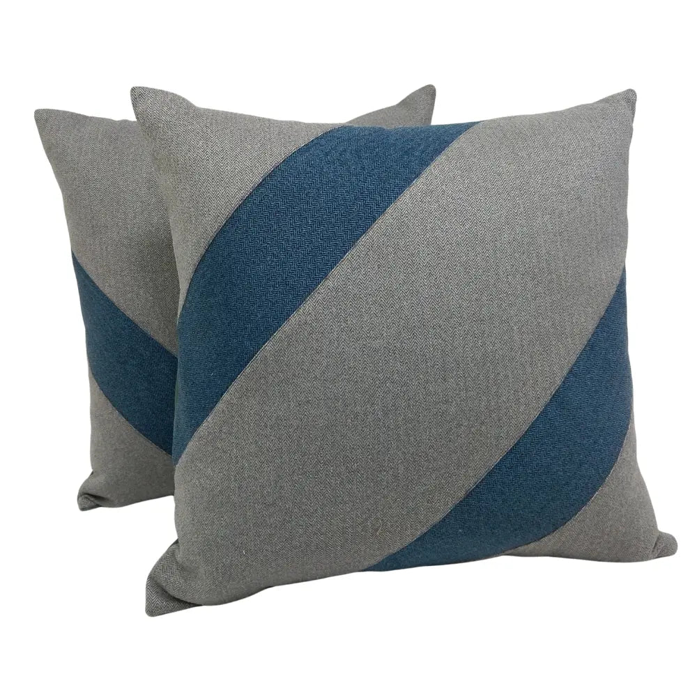 Designed for indoor use, these pillow covers feature a sophisticated herringbone fabric in grey, accented with a bold diagonal blue stripe. Elegant and timeless, they add a refined touch to sofas, chairs, or beds.