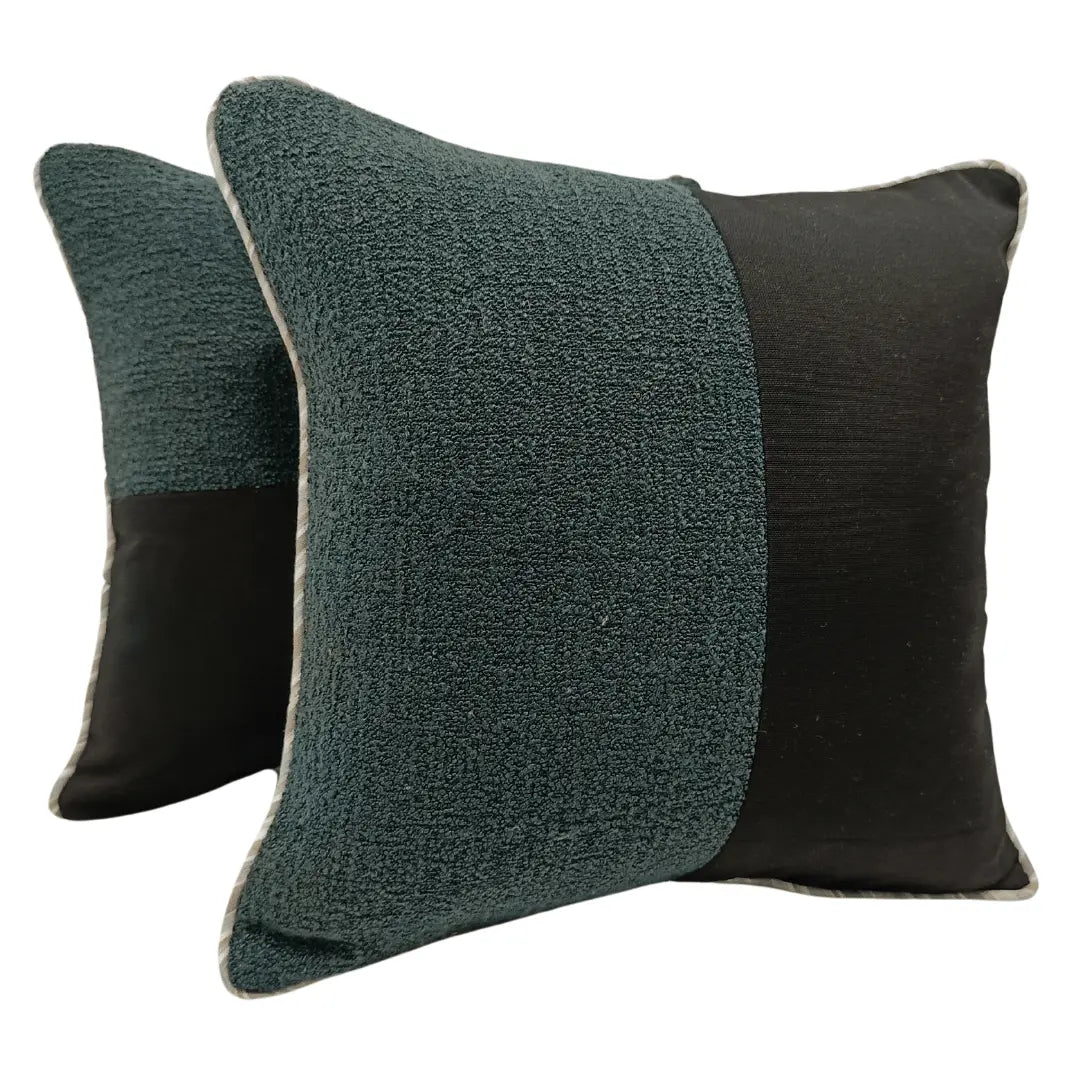 These pillow covers feature a stylish two-tone design, blending a rich boucle texture with smooth fabric for a modern yet cozy feel. The contrasting tones add depth and sophistication, making them a perfect addition to any decor. Crafted for durability and comfort, they are ideal for enhancing both living and bedroom spaces. The subtle piping detail further refines the look, adding a touch of elegance to your home.