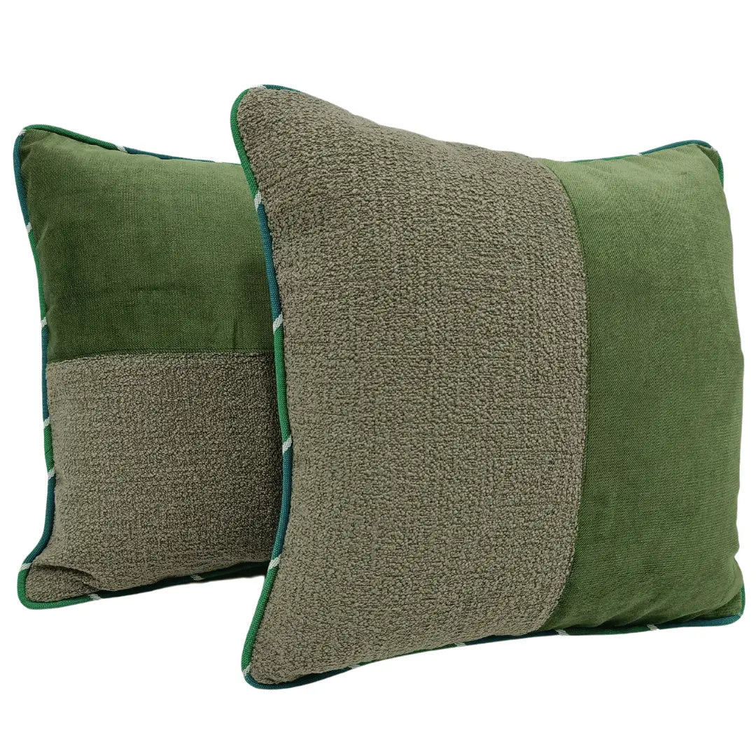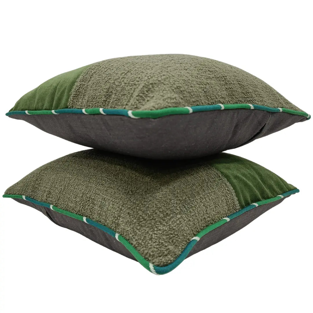 Elevate your home décor with this stunning set of patchwork pillow covers in rich green and taupe tones. Featuring a textured fabric mix and contrast piping, these covers bring a cozy yet sophisticated touch to any indoor space.