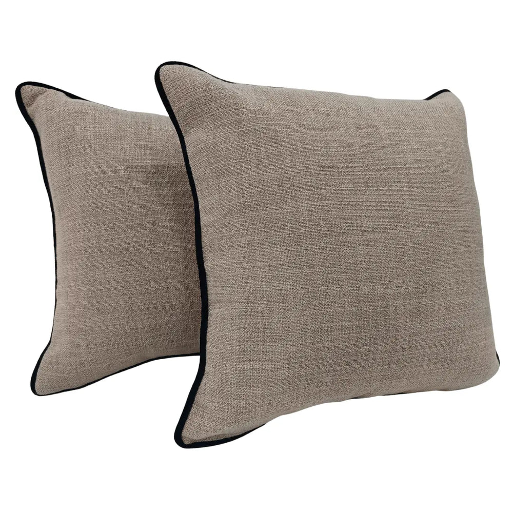 These stylish pillow covers feature a soft, textured beige fabric complemented by bold black piping for a sophisticated contrast. Perfect for indoor use, they add a touch of elegance to any space while offering durability and comfort.