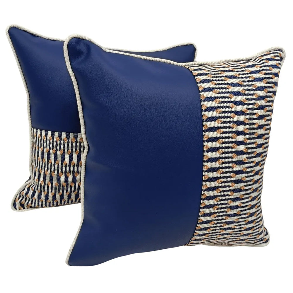 Enhance your living space with these uniquely designed pillow covers, featuring a bold mix of textures and colors. The intricate patterned fabric contrasts beautifully with smooth panels, creating a sophisticated yet cozy accent for any room. Crafted for both durability and style, these covers bring a modern edge to your home décor while maintaining a soft, inviting feel.