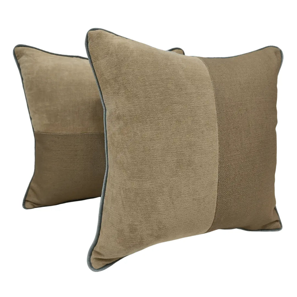 Bring a refined charm to your space with these beautifully crafted accent pillows. The rich combination of brown and beige tones, paired with a bold split design, creates a timeless aesthetic. Designed for indoor use, these cushions feature piped edges for a polished finish, making them a perfect addition to any cozy or contemporary setting.