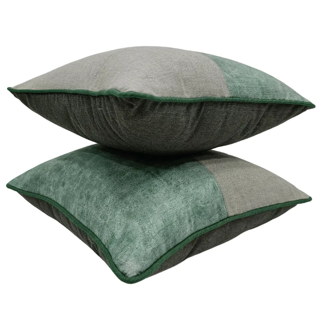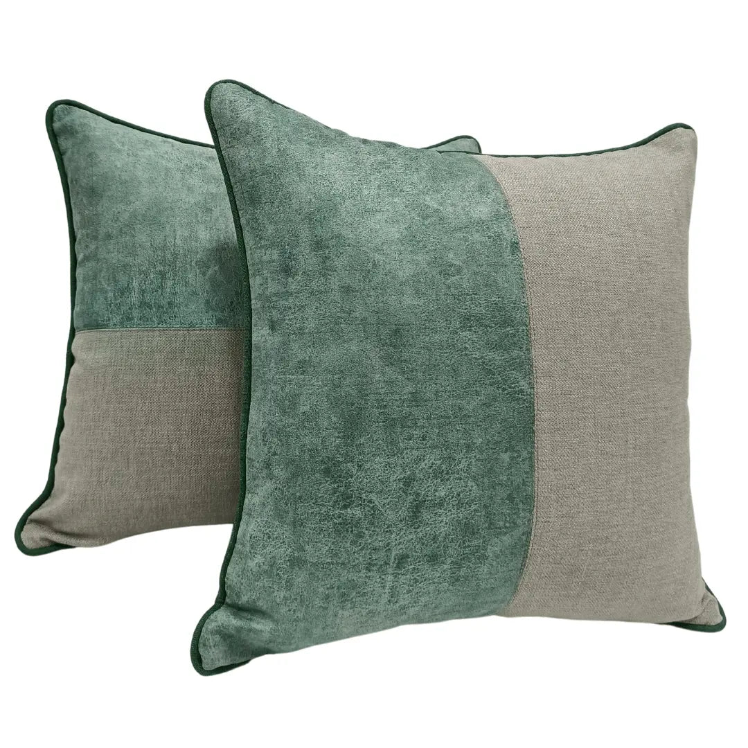 Add a sophisticated touch to your space with these stunning two-tone pillow covers. Featuring a combination of rich green velvet and neutral beige fabric, these cushion covers bring a perfect balance of luxury and subtle elegance. The deep green piping enhances the refined look, making them ideal for contemporary, modern, or rustic interiors.