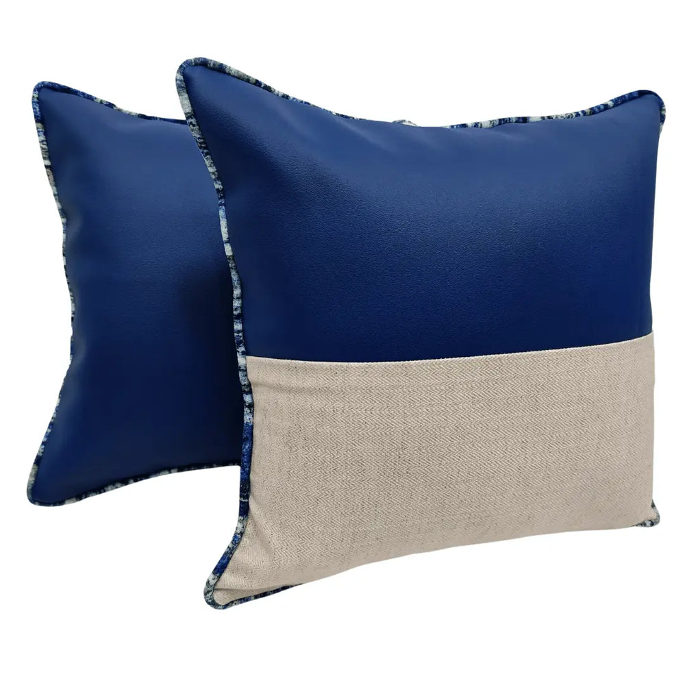 Add a modern touch to your indoor décor with these stylish 16x16 pillow covers. Featuring a striking contrast of deep blue and soft beige, these covers bring a bold yet sophisticated charm to any space. The refined piping detail enhances the design, making them a perfect accent for sofas, armchairs, or beds. Durable and easy to maintain, these pillow covers combine elegance with everyday comfort, elevating your home’s aesthetic effortlessly.