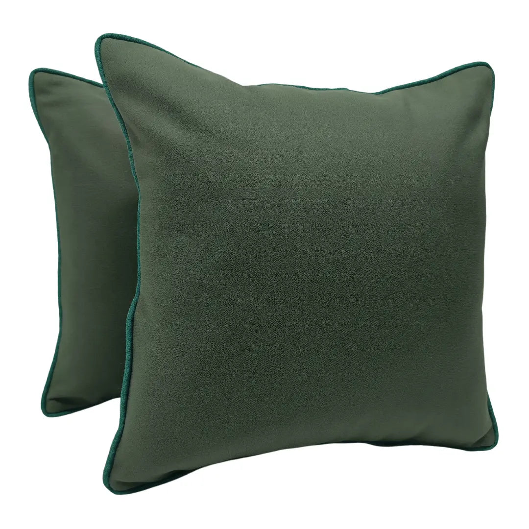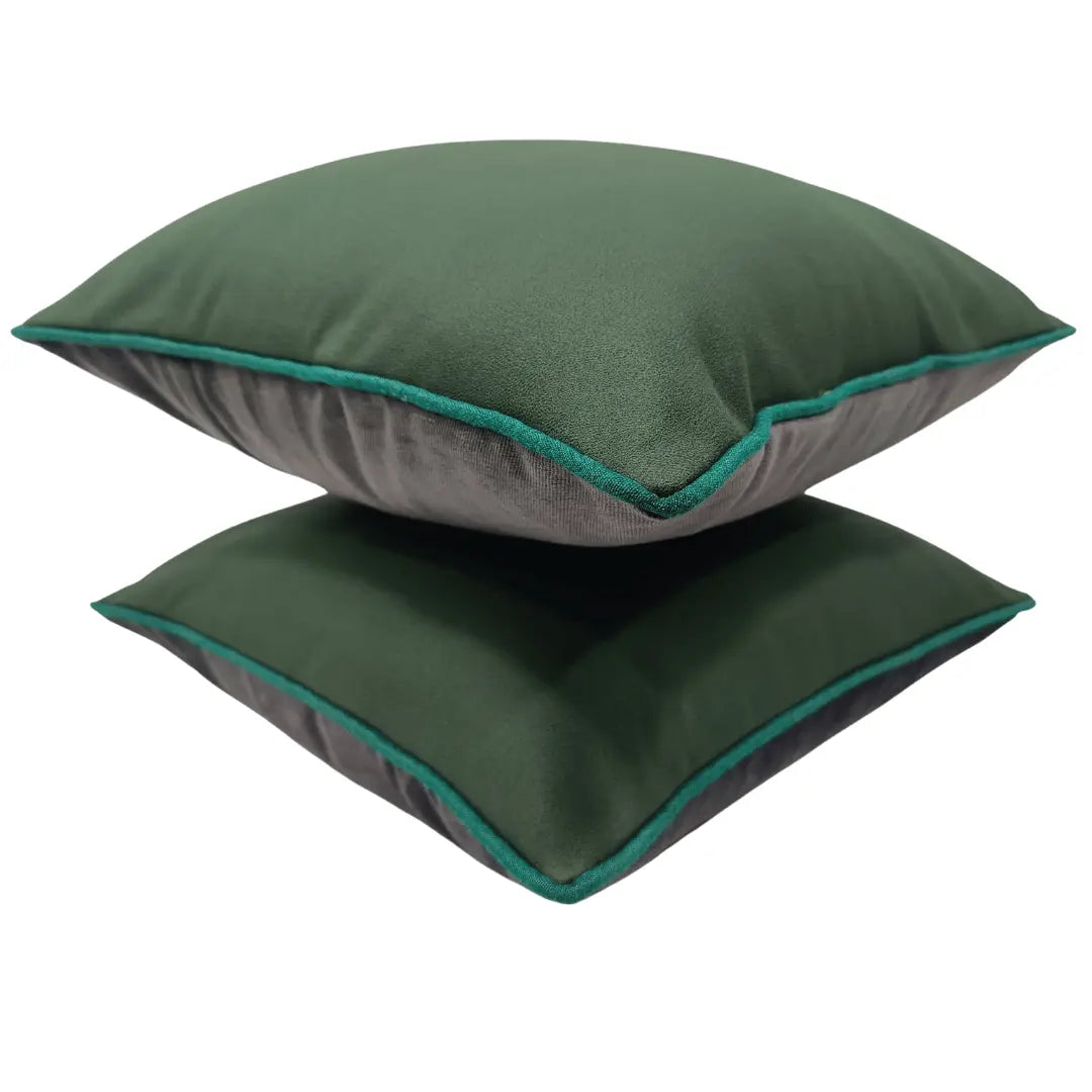 Elevate your decor with these Emerald Green Leather-Like Pillow Covers, featuring a smooth, leather-textured front and a rich velvet back. The deep green hue with contrasting teal piping adds a refined touch, making them a luxurious and durable choice for indoor settings. Perfect for sofas, lounges, and accent chairs.