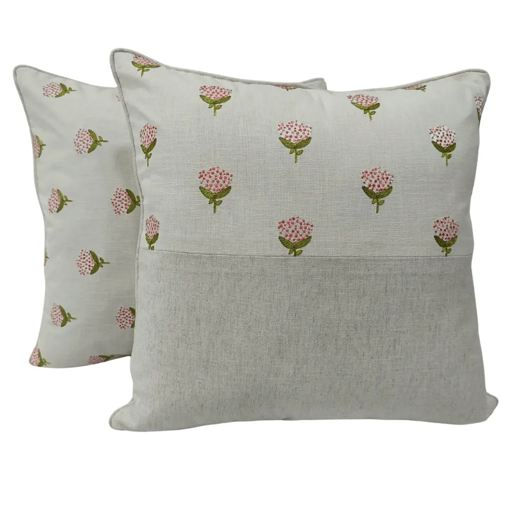 These indoor pillow covers feature a beautiful floral pattern complemented by a soothing light grey shade, these covers are perfect for creating a balanced, sophisticated look. Crafted from soft, durable fabric, they bring comfort and style to any sofa, chair, or bed.