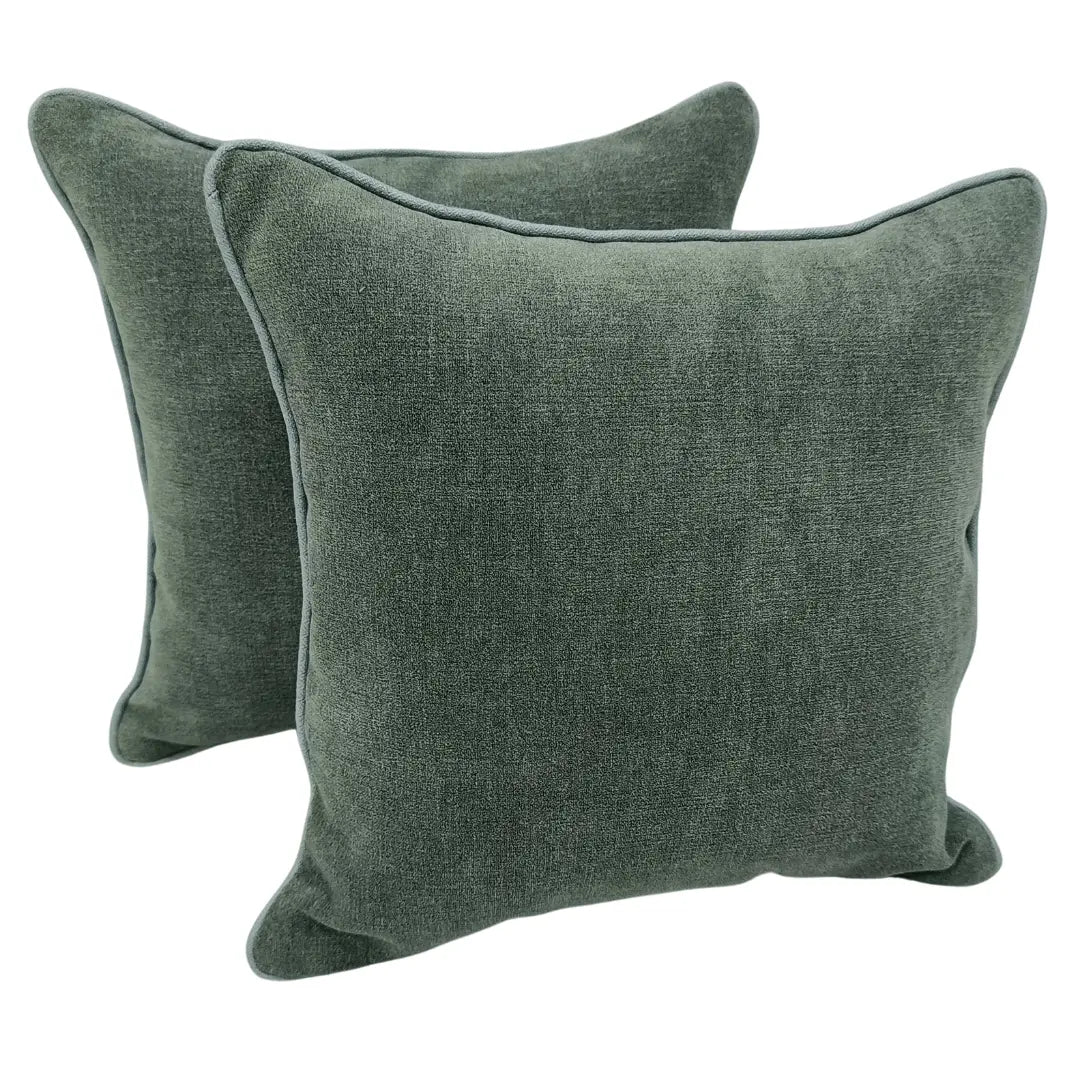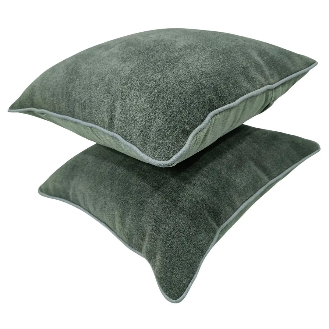 Elevate your space with these plush forest green velvet pillow covers. Designed for indoor use, they feature a soft texture with light grey piping for a refined finish. Perfect for adding a luxurious touch to sofas, chairs, or beds. Size: 16x16 inches.