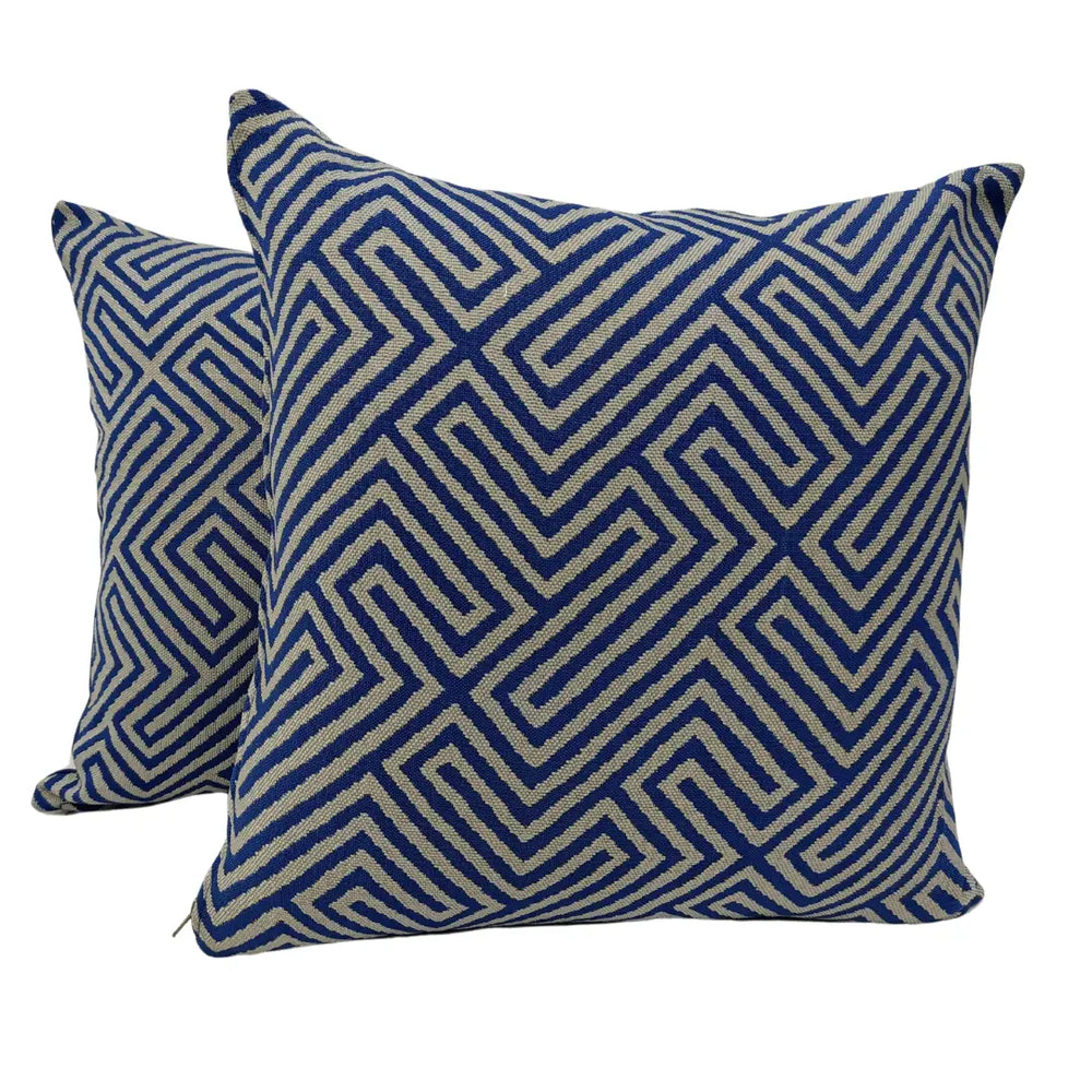 Add a fresh, modern touch to your space with these geometric blue and white pillow covers. Designed for both indoor and outdoor use, the clean lines and bold pattern offer a stylish contrast to any setting. Crafted from durable fabric, these pillows provide both comfort and lasting appeal. Perfect for sofas, chairs, patios, or lounges.