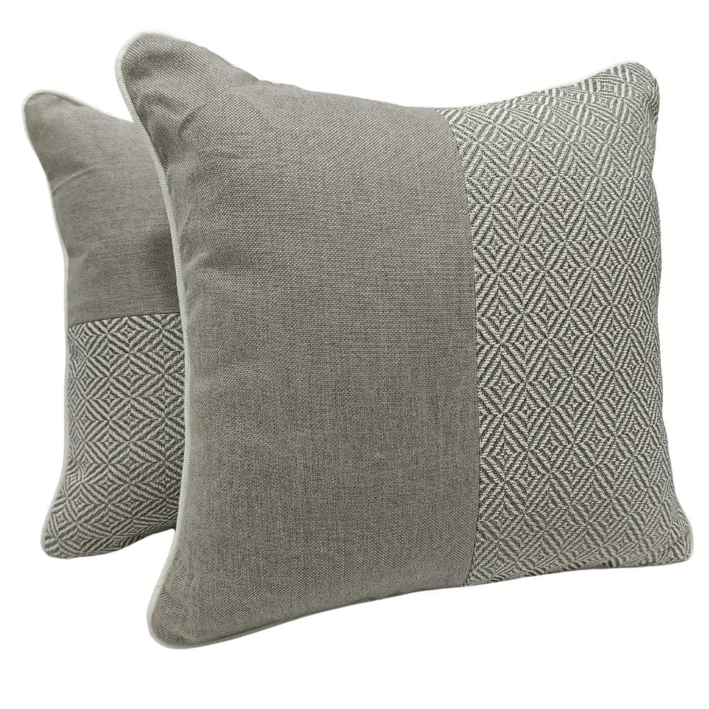 Enhance your space with these stylish pillow covers featuring a sophisticated mix of geometric patterns and textured fabric in neutral tones. The subtle contrast of designs, paired with soft piping, adds a refined touch, making them perfect for modern and contemporary interiors. Ideal for indoor use.