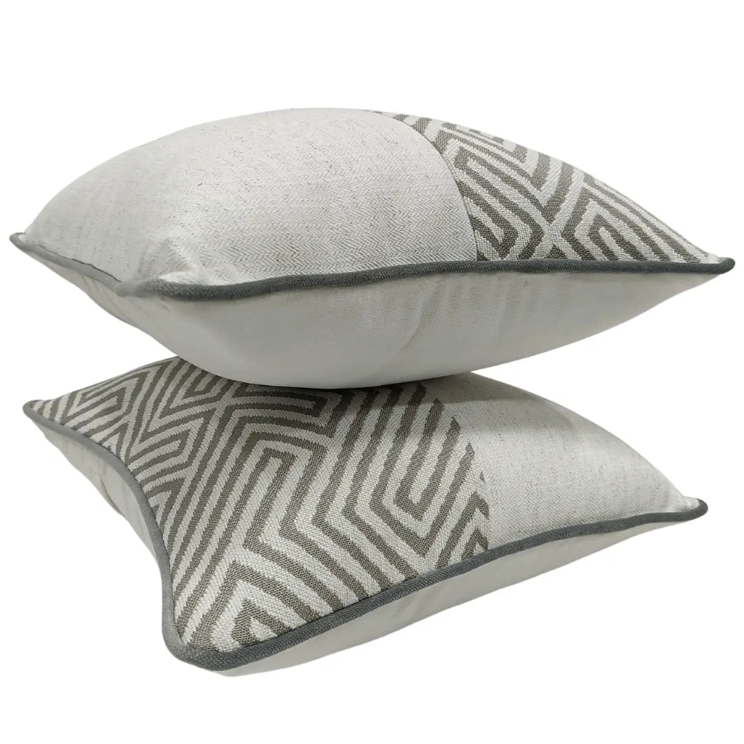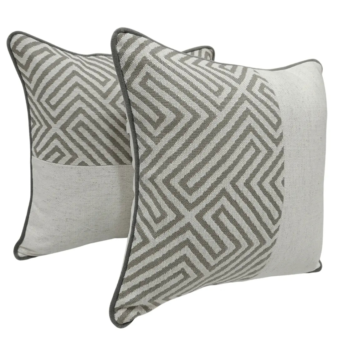 Add a modern touch to your indoors with these pillow covers, featuring a soft neutral base with a bold geometric pattern. The subtle piping enhances the clean and elegant design. Ideal for sofas, beds, or accent chairs.