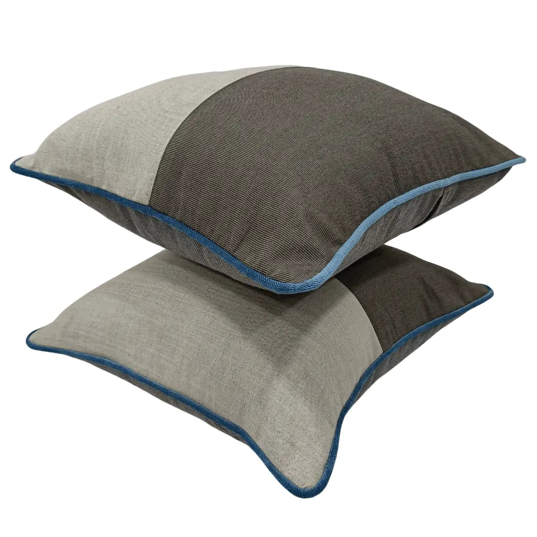 Add a modern touch to your space with these stylish dual tone pillow covers. Featuring a sophisticated mix of gray and charcoal hues accented with blue piping, these covers bring an elegant contrast to any setting. Designed for indoor use, they are perfect for sofas, chairs, or beds.