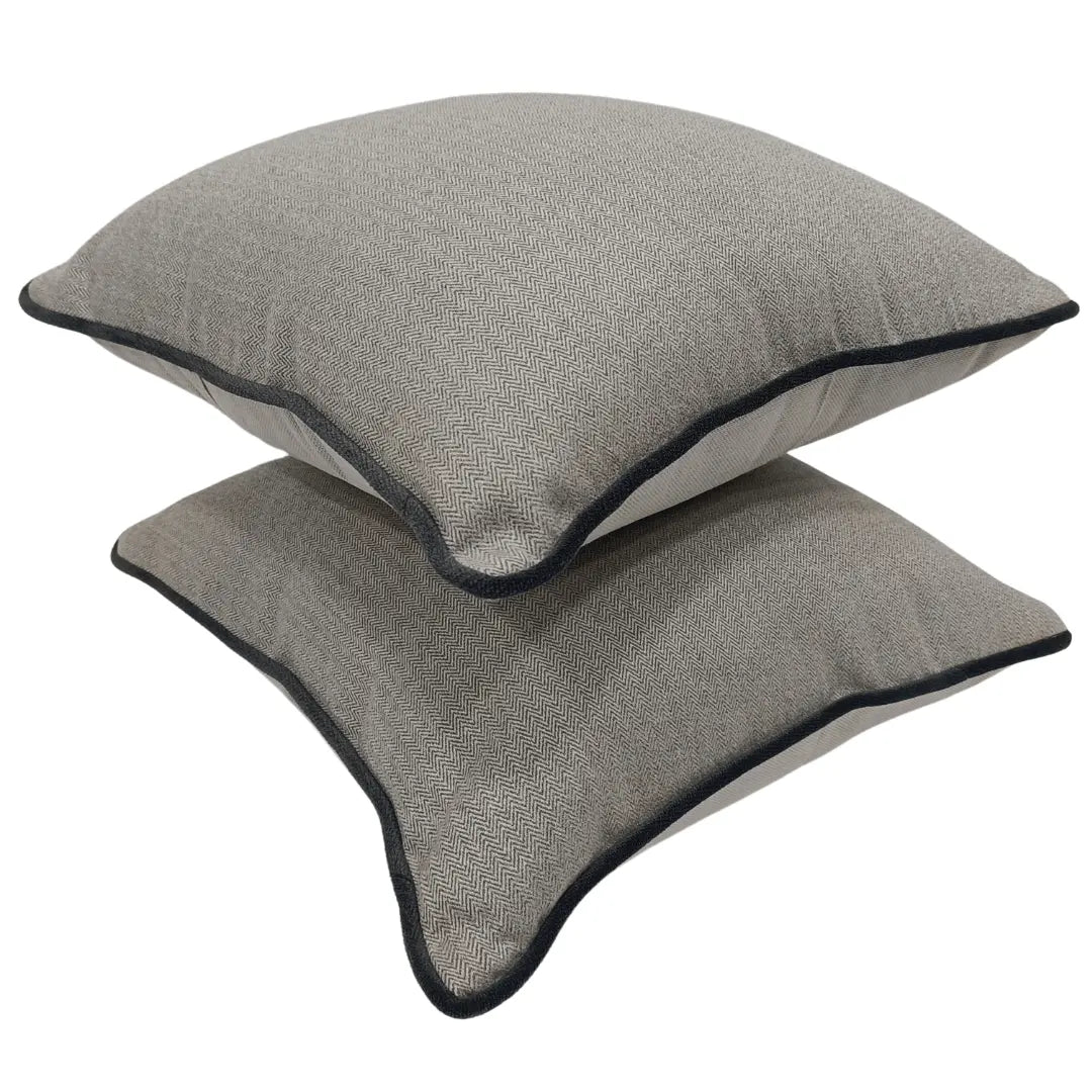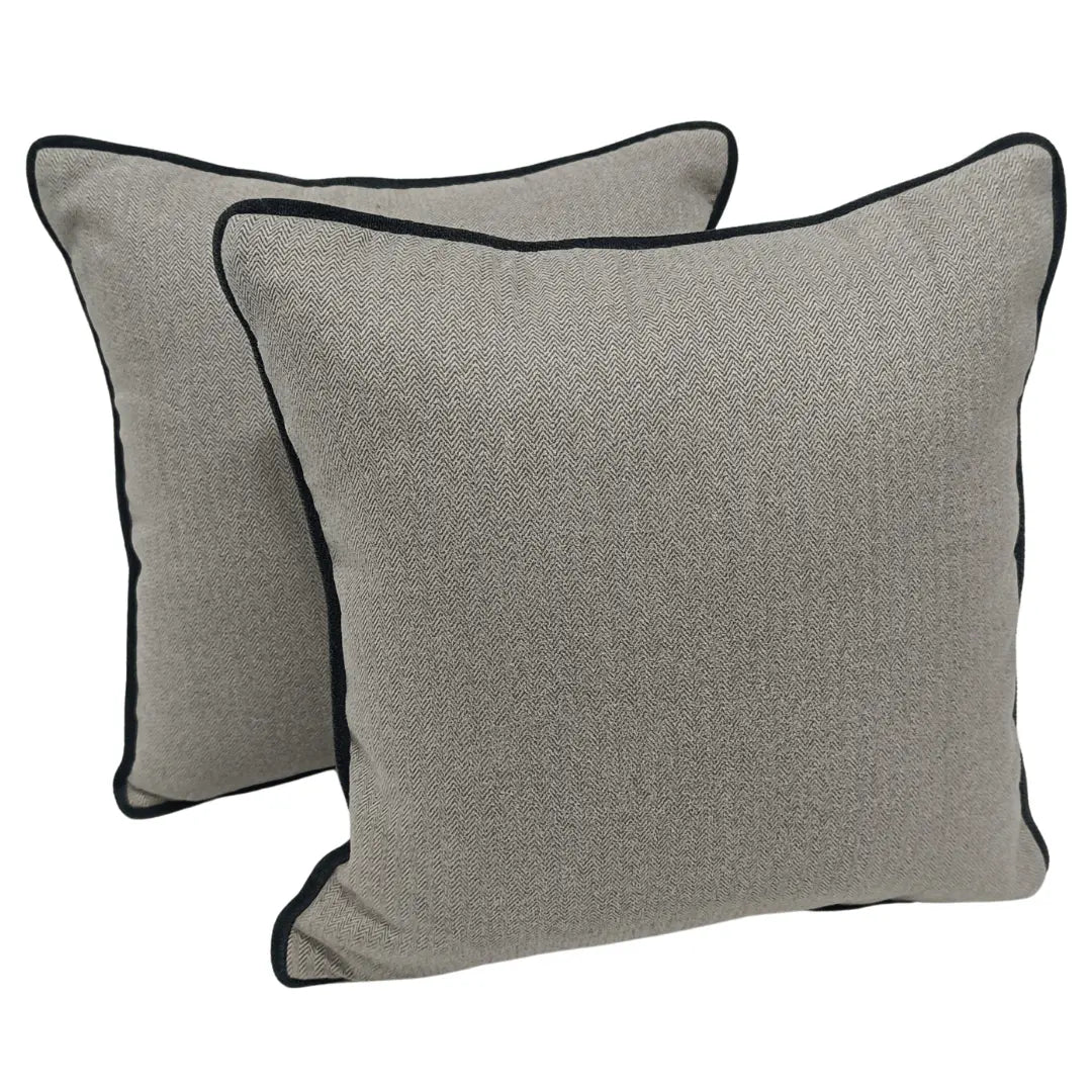 Add a touch of classic charm to your interiors with these Gray Herringbone Pillow Covers. Featuring a finely woven herringbone pattern with contrasting black piping, these cushions offer a timeless and sophisticated look. Perfect for indoor use, they complement both modern and traditional décor styles, making them an elegant addition to sofas, armchairs, or beds.